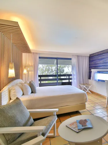 Avec sa vue dégagée sur la mer des Caraïbes, la Junior Suite Vue Mer est un véritable cocon tropical, idéal pour profiter de la douceur de vivre de La Créole Beach Hôtel & Spa. Son atmosphère intimiste et lumineuse invite à se détendre à son rythme, entre confort moderne et charme exotique.